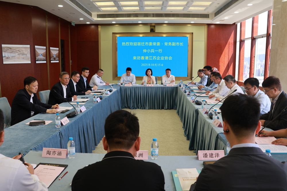 2025年10月15日上午,宿迁市委常委、常务副市长仲小兵率宿迁市政府代表团访问香港江苏企业协会,香港江苏企业协会会长、钟山有限公司董事长史先召热情接待,双方围绕深化苏港产业协同、金融合作等议题展开深入交流,共探两地发展新机遇